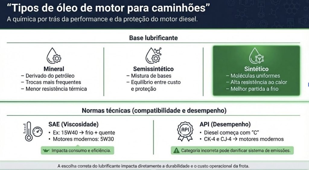 A especificação de um lubrificante diesel moderno é definida pelo equilíbrio entre a base (mineral ou sintética) e o pacote de aditivos químicos.